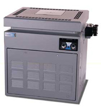 Gas swimming pool heaters might burn propane or natural gas to warm swimming pool water, and some manufacturers can provide an oil-burning model, which is very similar in construction. A gas pool heater consists of a series of finned copper tubes running back and forth above a burner tray. Gas is ignited on the burner tray to warm the copper tubing, and water from the filtration system is passed through. The pool water absorbs heat as it travels through the heated copper plumbing inside the pool heater, and then returns to the swimming pool.